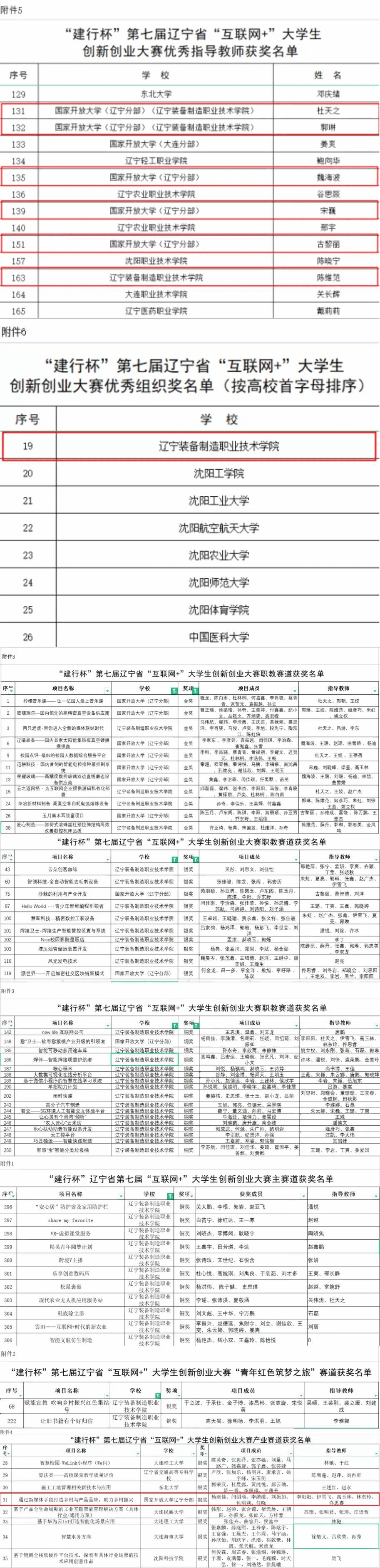 根據(jù)《“建行杯”遼寧省第七屆“互聯(lián)網(wǎng)+”大學(xué)生創(chuàng)新創(chuàng)業(yè)大賽暨第七屆中國國際“互聯(lián)網(wǎng)+”大學(xué)生創(chuàng)新創(chuàng)業(yè)大賽選拔賽的通知》(遼教辦[2021]118號)精神,遼寧省教育廳組織了“建行杯”第七屆遼寧省“互聯(lián)網(wǎng)+”大學(xué)生創(chuàng)新創(chuàng)業(yè)大賽,經(jīng)過學(xué)校初賽、專家評審、現(xiàn)場決賽,共有1451個(gè)項(xiàng)目獲獎(jiǎng),評選出26所高校獲得優(yōu)秀組織獎(jiǎng)。主賽道、紅旅賽道、職教賽道、產(chǎn)業(yè)命題賽道金獎(jiǎng)項(xiàng)目第一指導(dǎo)教師共165人獲得優(yōu)秀指導(dǎo)教師獎(jiǎng)。