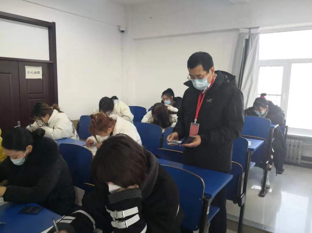 伊煥斌聽(tīng)取了任廣偉、劉璐就本次期末考試在疫情防控、考試組織等方面的工作匯報(bào),了解考點(diǎn)疫情防控和考試組織情況,按考試入場(chǎng)流程檢查了考點(diǎn)第一道門(mén)崗、第二道門(mén)崗及考室設(shè)置情況,并對(duì)考務(wù)辦公室運(yùn)行情況、試卷安全保密工作進(jìn)行了視察。他對(duì)考點(diǎn)的疫情防控和考試組織工作給予了充分的肯定,對(duì)一線工作人員的辛苦付出表示慰問(wèn)。