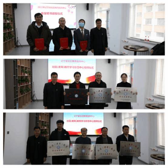 會(huì)上,邢古城代表遼寧省社區(qū)教育指導(dǎo)中心向新聘任的社區(qū)教育專家頒發(fā)了聘任證書,向首批獲得社區(qū)(老年)教育示范學(xué)習(xí)中心的單位代表頒發(fā)了“社區(qū)(老年)教育示范學(xué)習(xí)中心”牌匾。