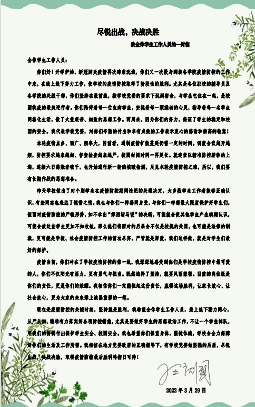 關(guān)心黨員工作生活。黨委副書(shū)記、校長(zhǎng)郭永新得知機(jī)械工程學(xué)院黨員王雅娜過(guò)生日,特意送來(lái)祝福信并叮囑食堂送來(lái)長(zhǎng)壽面、生日蛋糕。黨委委員、副校長(zhǎng)任慶國(guó)第一時(shí)間為全體學(xué)生工作人員發(fā)來(lái)慰問(wèn)信,鼓勵(lì)大家用勇氣與擔(dān)當(dāng)贏得疫情防控保衛(wèi)戰(zhàn),并責(zé)成學(xué)生工作處向入住學(xué)生宿舍的學(xué)生隊(duì)伍及時(shí)發(fā)放生活補(bǔ)助物資。輔導(dǎo)員紛紛表示感謝黨委對(duì)大家的關(guān)心和用心,將以高昂的斗志奮斗在防控疫情的第一線。