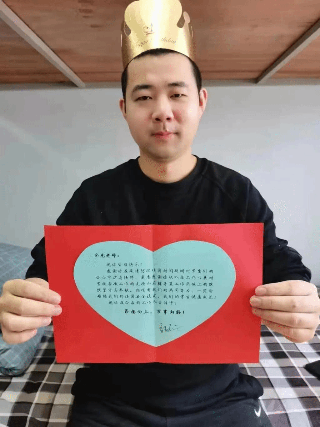 疫情攔路,愛不止步。自學校封閉管理以來,各項防控工作有條不紊、持續(xù)有序地順利開展。學校始終高度關心駐校教職工的工作和生活,為了讓他們安心、暖心地度過這段特殊時期,為他們準備了特別的生日祝福,種種貼心的舉動,在這個特殊的時期顯得格外溫暖。