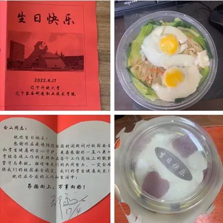 “學校太貼心了,在封閉管理這么特殊的時期,還想著我的生日,今天雖然在生命的木樁上加了一道年輪,一份成熟,一份智慧,但是我更大的收獲是在教育的樹樁上加了一份真情,一種依靠和信賴?!逼嚬こ虒W院輔導員裴婷婷老師激動地說。4月8日是汽車工程學院輔導員裴婷婷老師和機械工程學院輔導員戴勁老師的生日,在這個特殊的日子里,學校領導為他們送來了生日面、生日蛋糕、生日賀卡以及生日禮物,戴勁說:“生日蛋糕夾著學校最真誠的祝福,和同事一起吃生日面,一起吃生日蛋糕,這將是我最難忘最有意義最有儀式感的一個生日!”