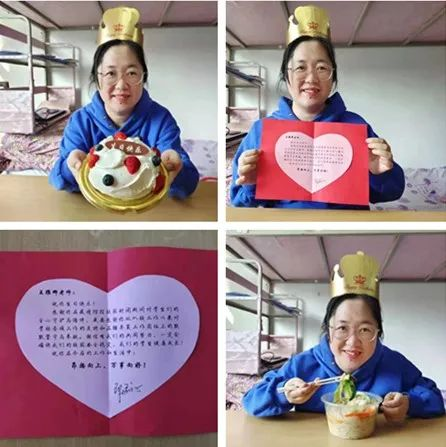 李紅老師是自動控制工程學院的輔導員,4月6日是她的生日,因為封校管理她壓根就沒想著生日這回事,直到同事將學校的祝福端到她的面前,她感動不已“以往過生日時,都會和家人一起慶祝,這次雖然少了家人的陪伴,但堅守在校園防疫一線過生日更有意義。感謝學校領導的關心和祝福,疫情當前,作為一名輔導員,我一定會恪盡職守,用實際行動詮釋輔導員的責任和擔當?!?/p>