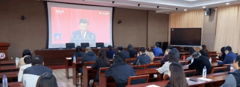 我校全體師生通過多種途徑認真收聽收看了黨的二十大開幕會盛況。學校設(shè)立中心會場,學校領(lǐng)導班子成員、黨群與服務(wù)保障部門和教學管理及服務(wù)部門的主要負責同志在明德樓中心會場集中收看開幕會盛況。各黨總支(支部)和團委分別組織全校教師和學生第一時間收聽收看。