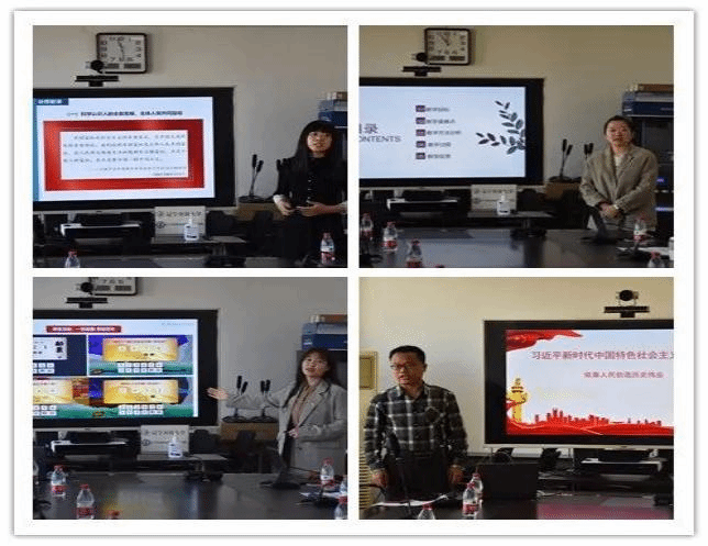 會(huì)上,姚蘭匯報(bào)了思政課建設(shè)情況,重點(diǎn)包括思政課建設(shè)情況、取得的成果及存在的一些問(wèn)題等。裴立媛老師組織了《習(xí)近平新時(shí)代中國(guó)特色社會(huì)主義思想》課程的集體備課。在集體備課會(huì)中,朱金利老師圍繞“依靠人民創(chuàng)造歷史偉業(yè)”做課程教學(xué)展示,陳曉紅、曹珊珊、田秋影三位老師分別圍繞第三專題“堅(jiān)持以人民為中心”做了教學(xué)設(shè)計(jì)的分享,各位參會(huì)老師圍繞四位教師的教學(xué)展示作出點(diǎn)評(píng)并提出建議。