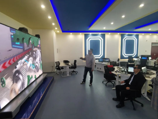 伊煥斌實(shí)地考察了智能產(chǎn)線總控室、智能制造車間、增材制造實(shí)訓(xùn)室、虛擬仿真專業(yè)中心等地,認(rèn)真觀看智能制造產(chǎn)線運(yùn)行情況,親身體驗(yàn)虛擬仿真設(shè)備應(yīng)用效果,全面了解學(xué)院的教學(xué)科研、校企合作及技能大賽情況。