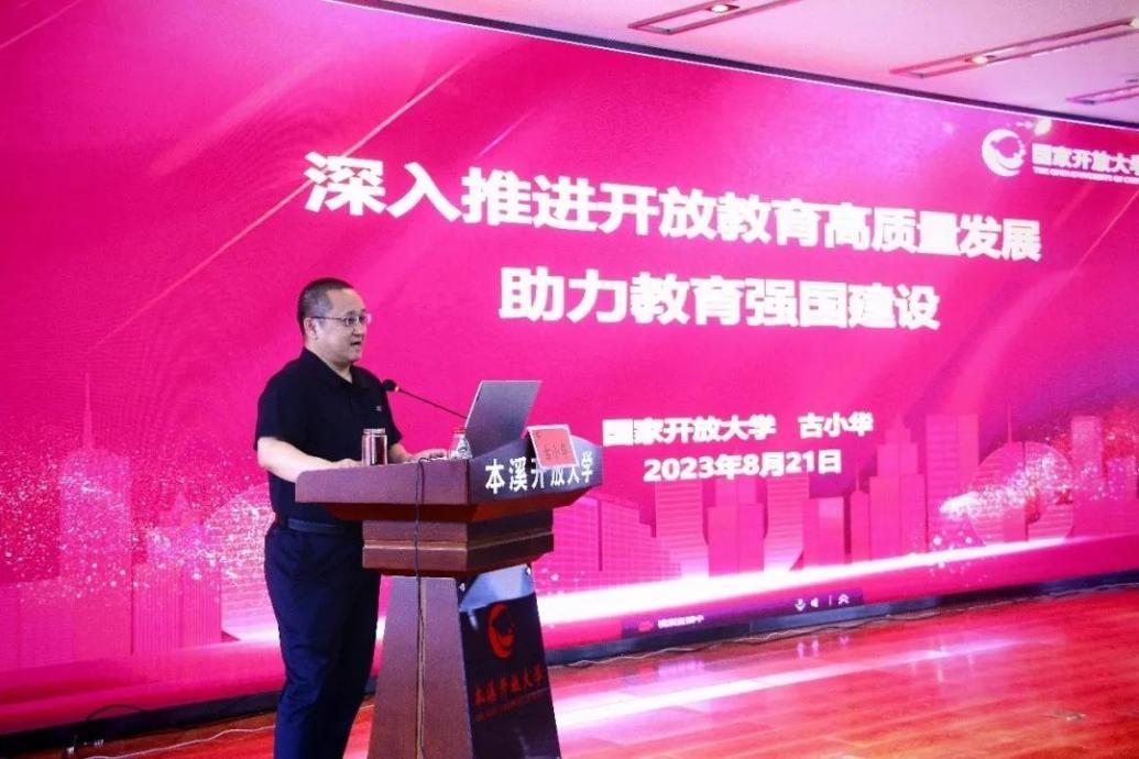 國(guó)家開(kāi)放大學(xué)教務(wù)部部長(zhǎng)古小華作了題為“深入推進(jìn)開(kāi)放教育高質(zhì)量發(fā)展 助力教育強(qiáng)國(guó)建設(shè)”的講座。