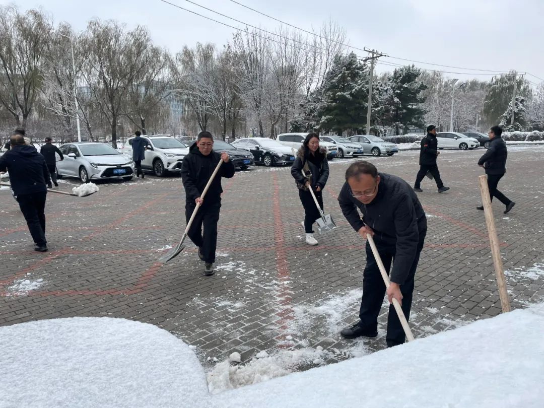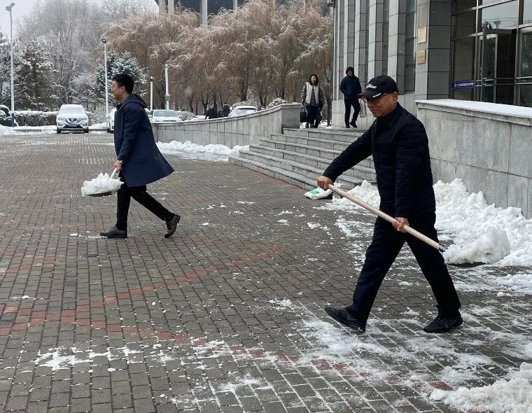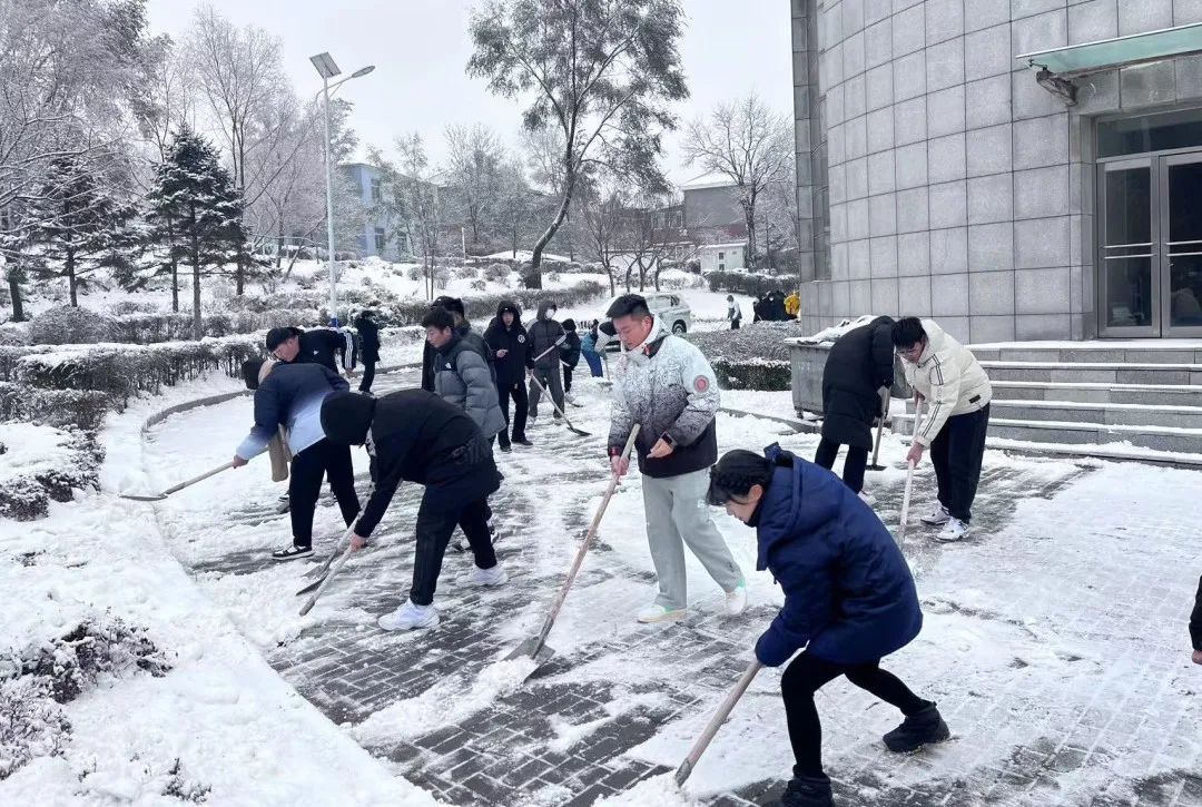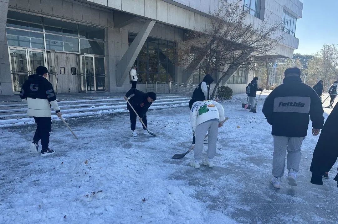凜冽寒風不能阻擋師生們的積極性,大家主動領取清雪工具,迅速對校園內師生出行必經路段的積雪進行了清掃,三人一群、兩人一伙,不顧寒冷、干勁十足。拿著鐵鍬、掃帚清掃工具,掃的掃,鏟的鏟,推的推,熱火朝天。鐵鍬與地面的撞擊出鏘鏘的聲音,和著掃雪的沙沙聲,彈奏出一曲歡樂之歌。教學樓前、臺階上等學生在校必經之路上,處處留下大家熱情的身影。團結的力量讓這個冬日變得格外燦爛溫暖。
