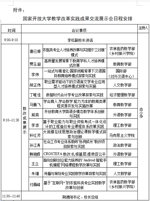 附件:國(guó)家開(kāi)放大學(xué)教學(xué)改革實(shí)踐成果交流展示會(huì)日程安排