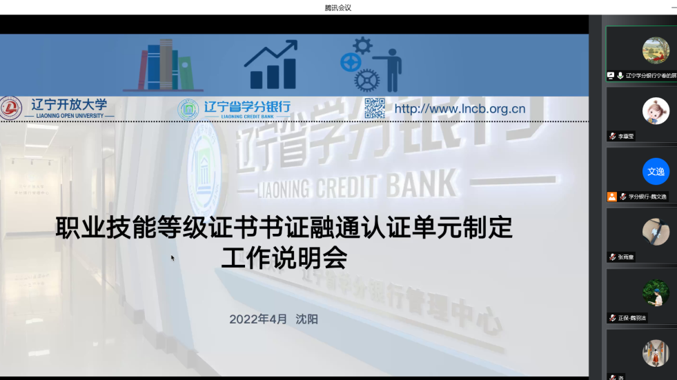 為貫徹落實(shí)遼寧省教育廳辦公室發(fā)布的《關(guān)于進(jìn)一步做好職業(yè)技能等級證書書證融通工作的通知》要求,推進(jìn)本年度職業(yè)技能等級證書書證融通工作,4月29日,學(xué)分銀行管理中心組織召開書證融通認(rèn)證單元制定啟動會暨培訓(xùn)會,會議通過騰訊視頻召開,近80位培訓(xùn)評價(jià)組織負(fù)責(zé)人及相關(guān)專家參會,學(xué)分銀行管理中心負(fù)責(zé)人寧春做專題報(bào)告。
