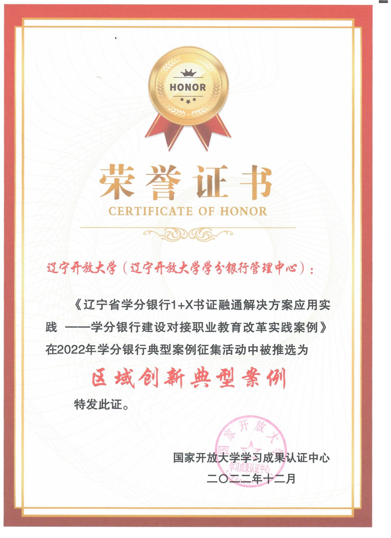 為貫徹落實(shí)《國(guó)家職業(yè)教育改革實(shí)施方案》有關(guān)要求,探索開(kāi)發(fā)省級(jí)學(xué)分銀行應(yīng)用場(chǎng)景,我校學(xué)分銀行管理中心立足遼寧省教育改革和發(fā)展實(shí)際需求,對(duì)接職業(yè)教育教學(xué)改革,創(chuàng)新研發(fā)了職業(yè)技能等級(jí)證書(shū)書(shū)證融通學(xué)習(xí)成果認(rèn)定與轉(zhuǎn)換解決方案,完成了“學(xué)分銀行建設(shè)對(duì)接職業(yè)教育改革實(shí)踐”,被國(guó)家開(kāi)放大學(xué)評(píng)為2022年區(qū)域創(chuàng)新典型案例。